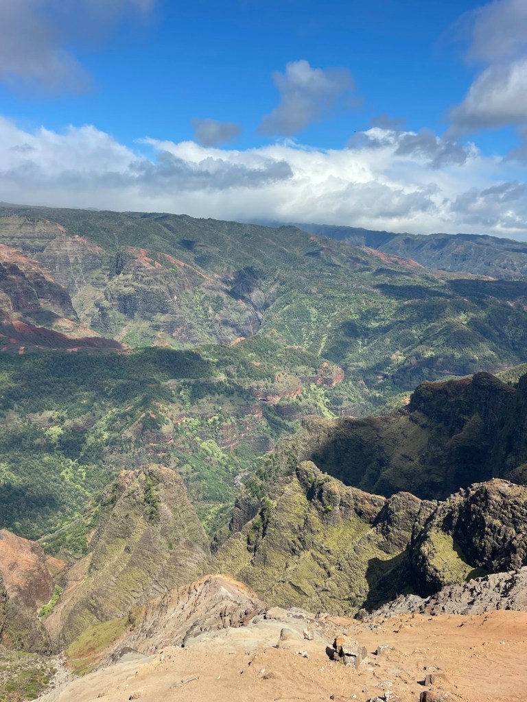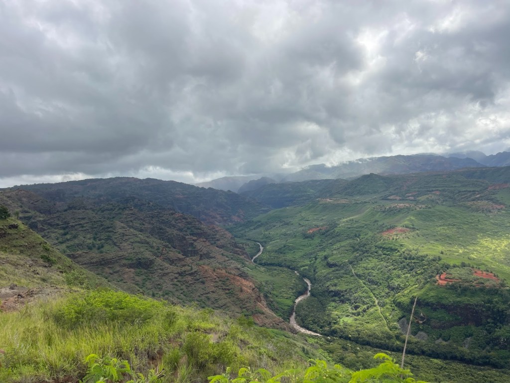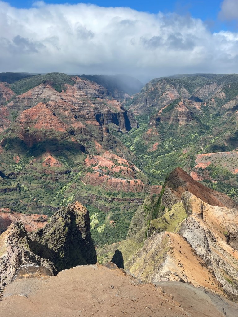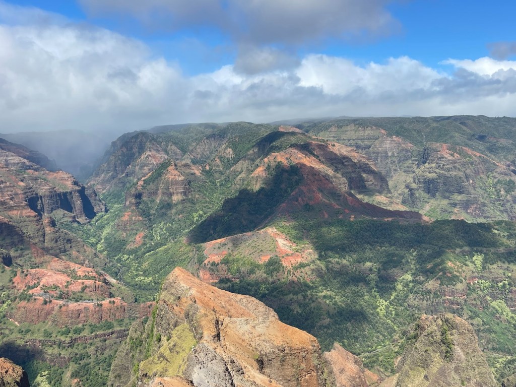 Napali and Waimea in one day was the last full day while on the western side of Kauai. Pegged as the Grand Canyon of Hawaii, the red-green color scheme with shadowing of the clouds and brightness of the sun make it spectacular.