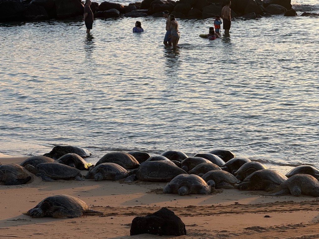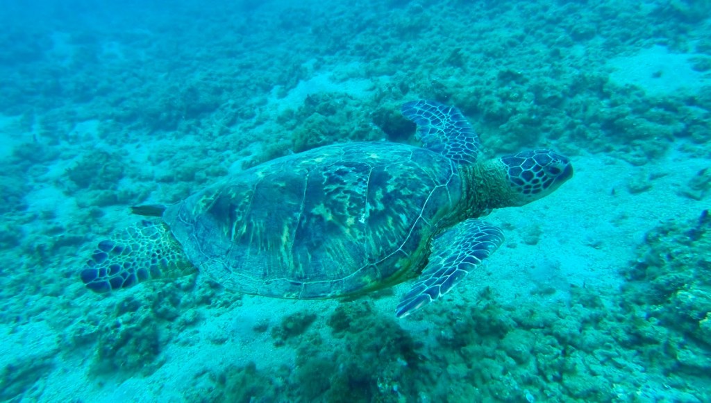 Boris stayed there all day even as dusk was approaching, but was gone the next morning. Then there were all the turtles unaffected by all boogie boarders and body surfers that were swarming in the waters;