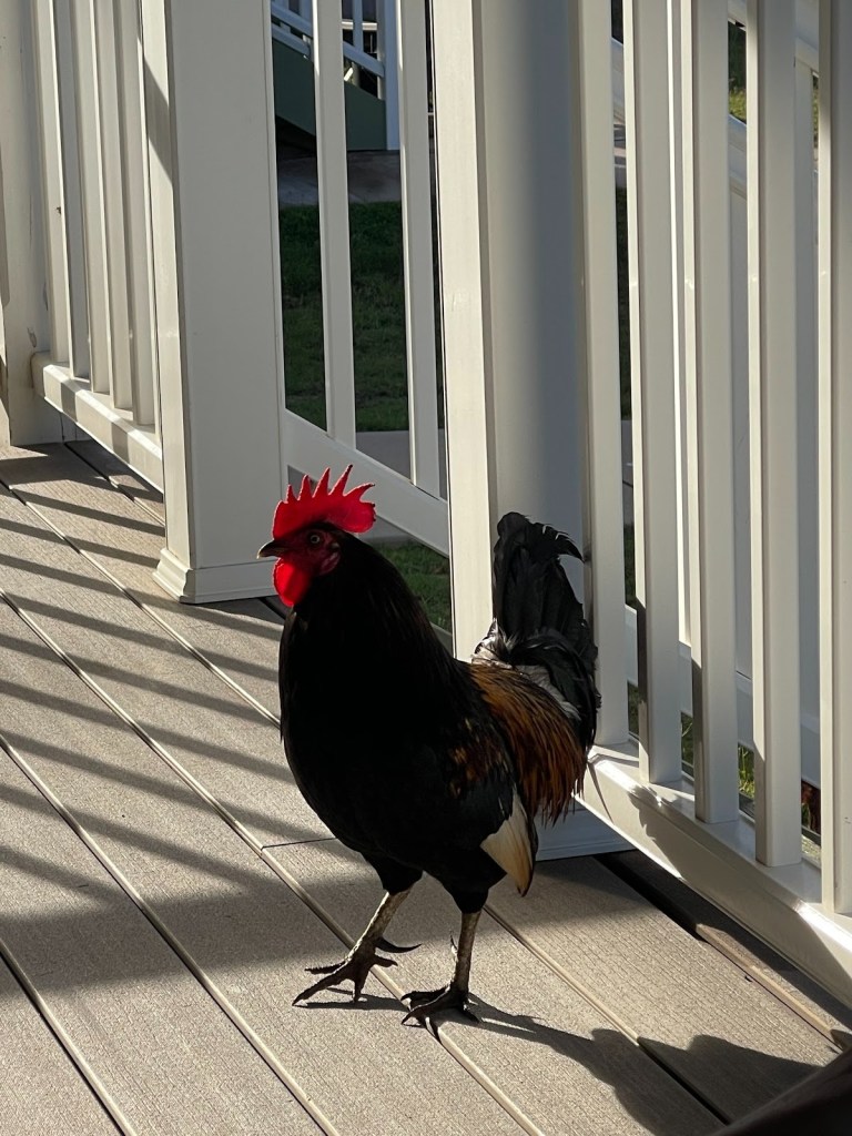 This is a lovely beach park on the northern part of Kauai near Princeville, whereas Poipu is on the southern part of the Island. Driving almost the whole way down Anini Beach, we found a luscious spot under the trees with an exceptionally beautiful rooster and his hens. The Snorkeling was not great the first time, but we would return another time and park near the beginning of the beach park, rather than a mile down the road.