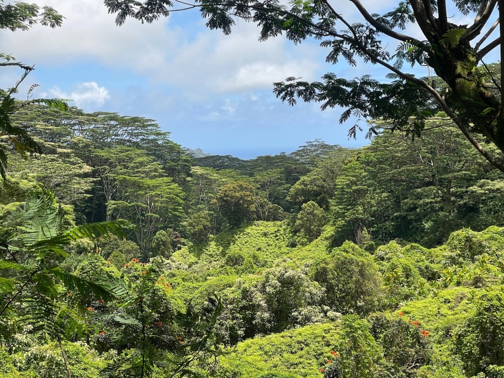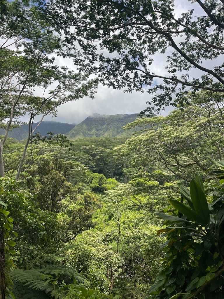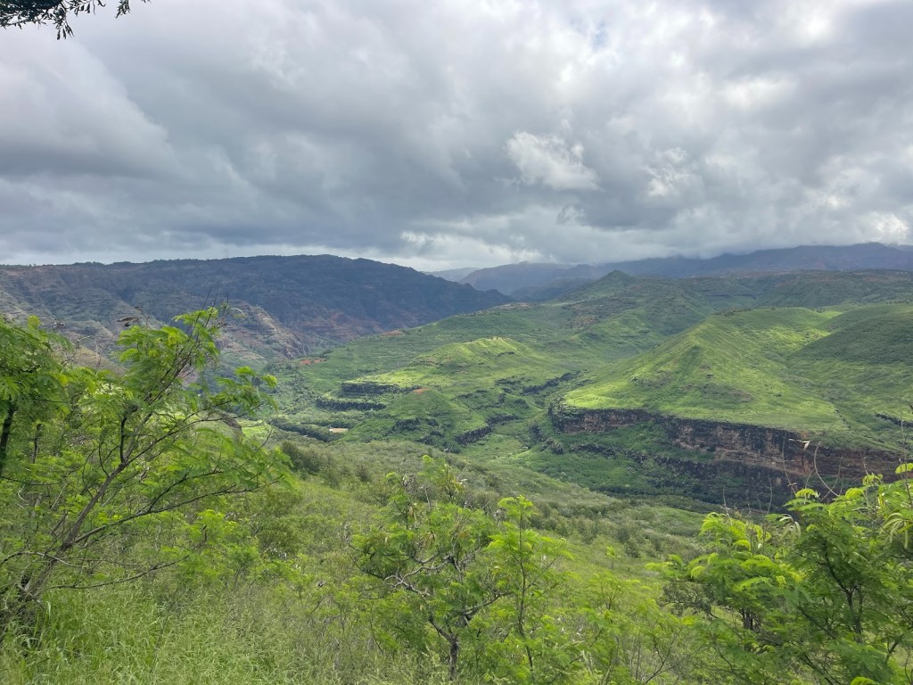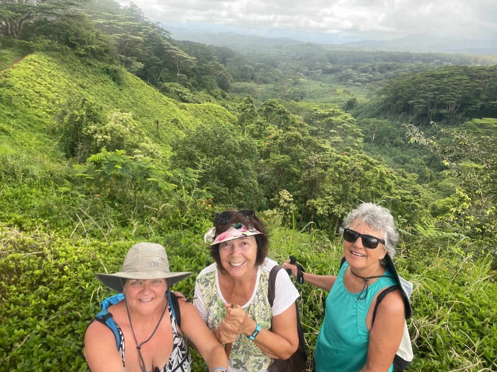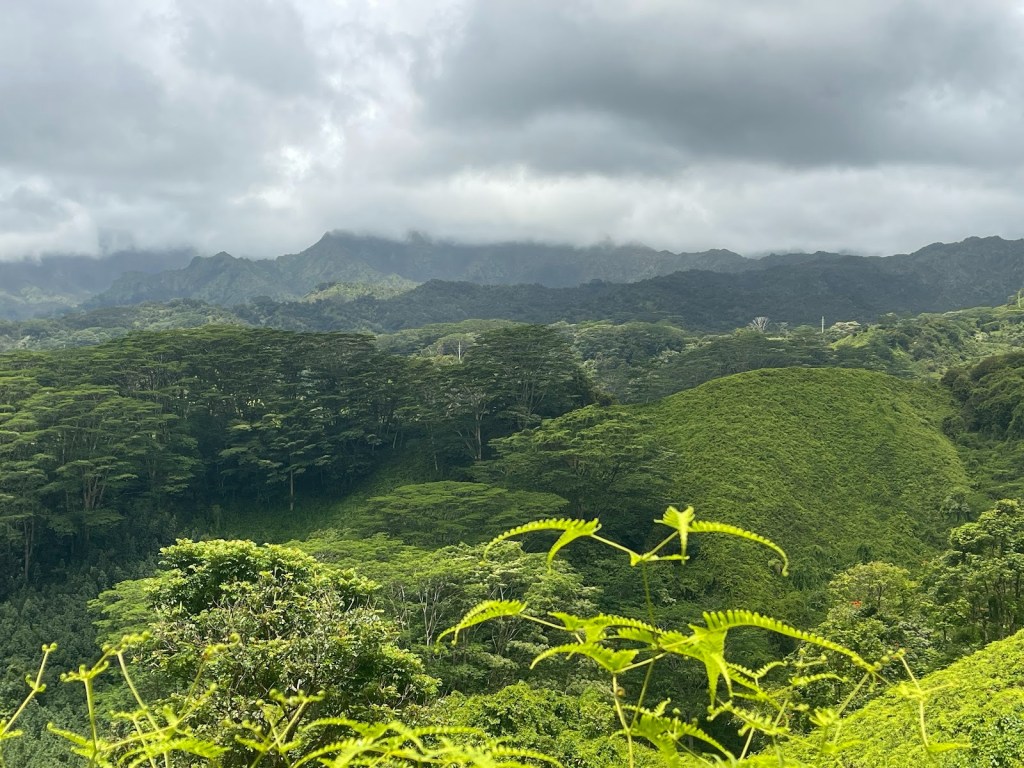 The greens of rolling Hawaiian hills are luscious for our 4 mile hike.