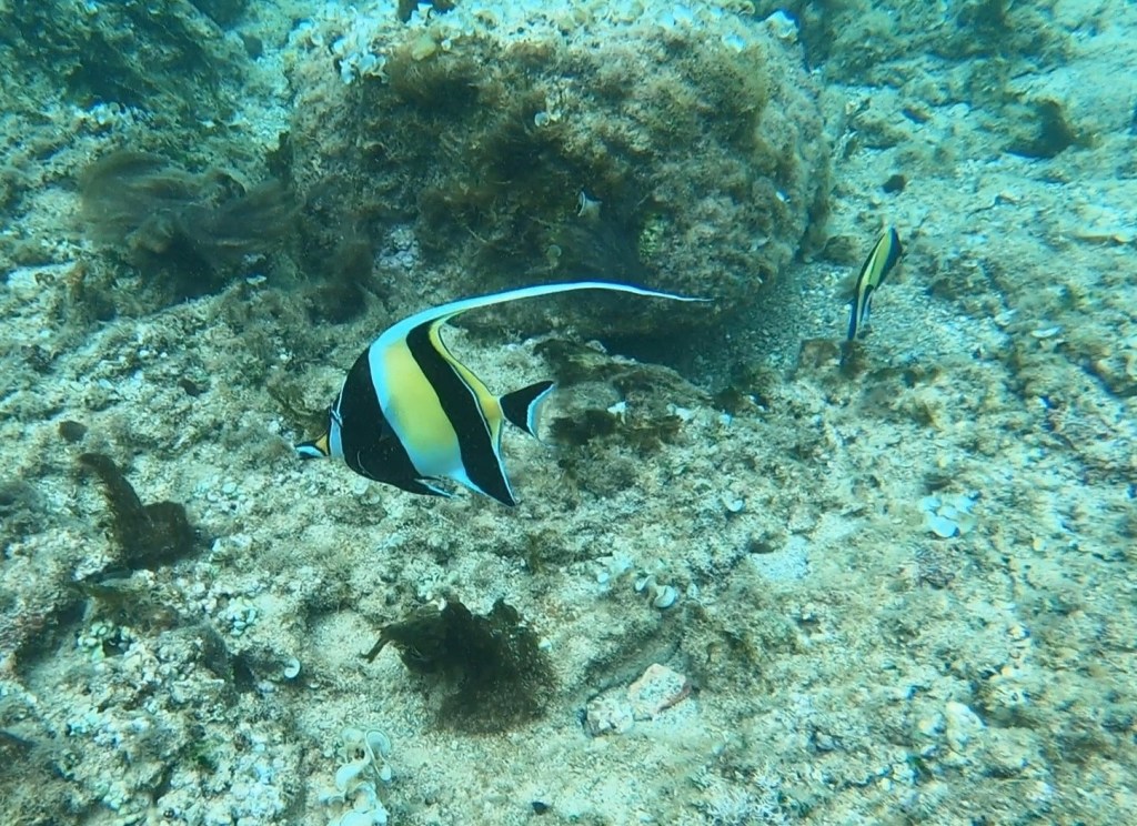 Most importantly, snorkeling on the east of the beach park was better. I saw three turtles and many fish, including Gertrud’s favorite, Moorish Idols who I followed for quite some time.