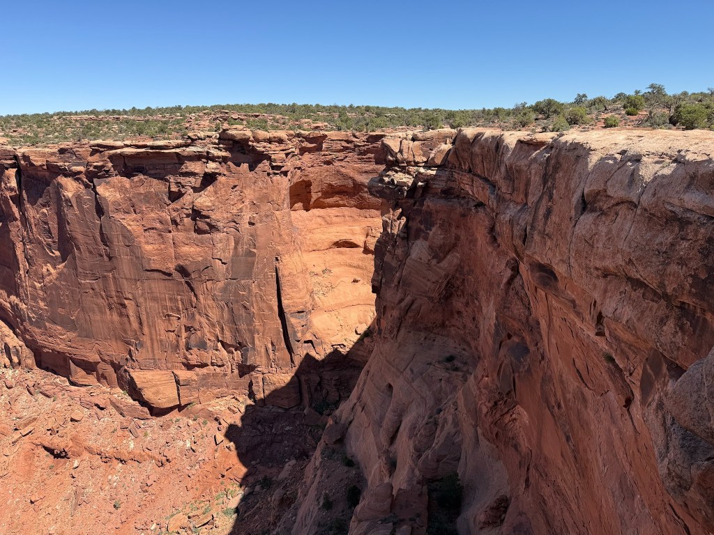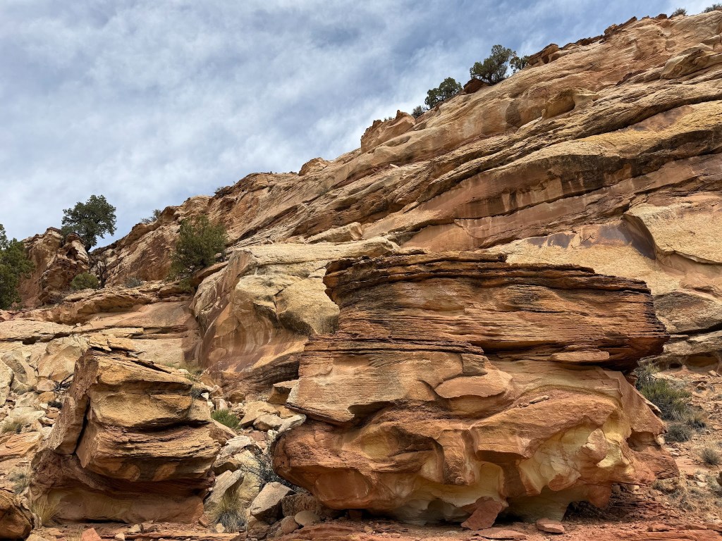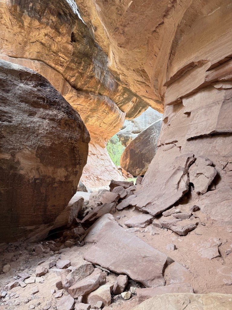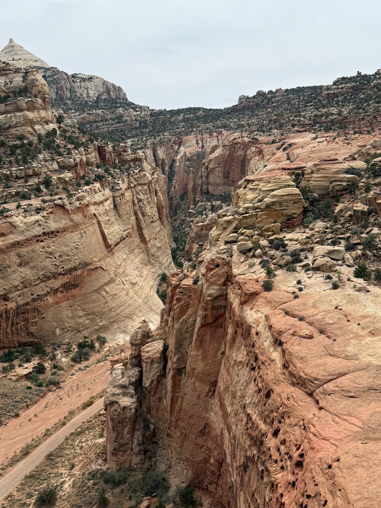 So many large cracks in the rock cliffs that you wouldn’t want to be around in one of those flash floods or earthquakes because boulders and sides of cliffs have a steep far way to tumbe.