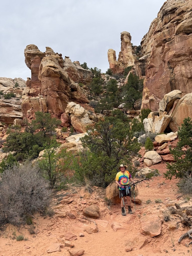 But we were on the trail by 10 am which is unusual given John’s propensity to sleep. The payoff was incredible as we hiked through the sewing basket seeing round top pins, thimbles, and needles. The trail was well marked with cairns because there was a lot of walking over rock as well as climbing between narrow passages of rock and even through a rock tunnel.