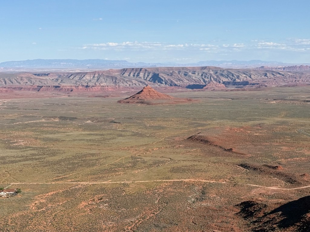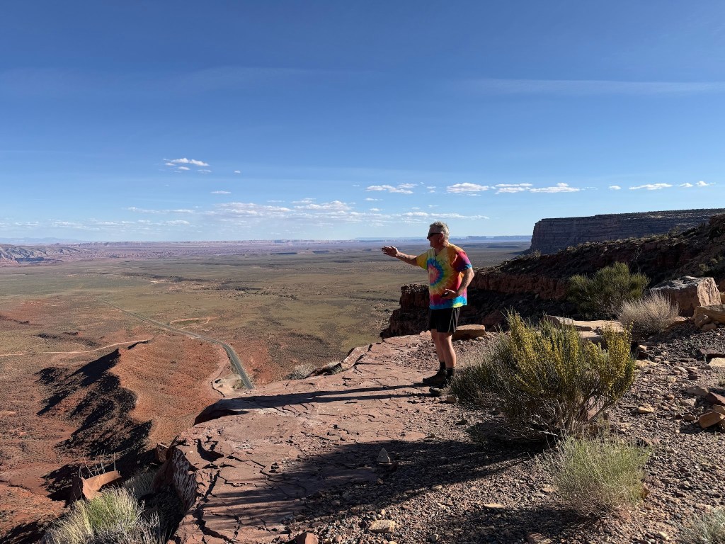 The Moki Dugway not only has a nice ring to its name, but it is very steep narrow gravel road that was used for the abandoned mining of Uranium. The view was incredible over the beginning of the Monument Valley Area. He could have camped at Muley Point which evidently looks over the San Juan River, but didn’t realize we needed to turn before the Moki. One-way on the Moki Dugway was enough for us so after the awe inspiring height and expansive view of the Navajo Nation we decide to go onto Monument
