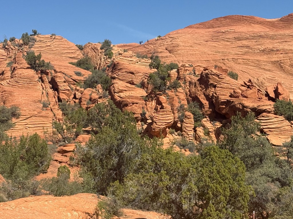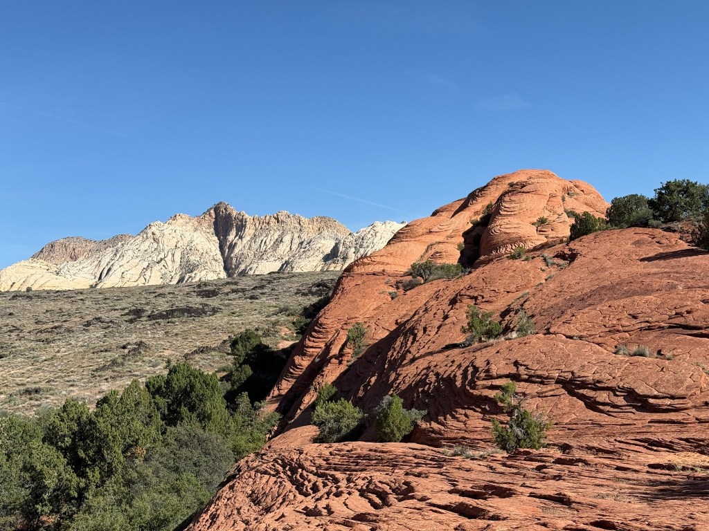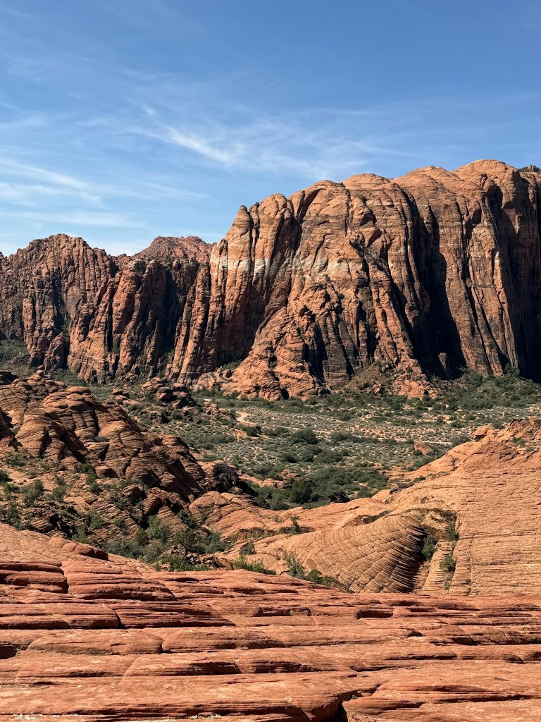 The reds of the sandstone in so many textures and cypress green mixed with a bit of the distant white mountains are incredibly beautiful.