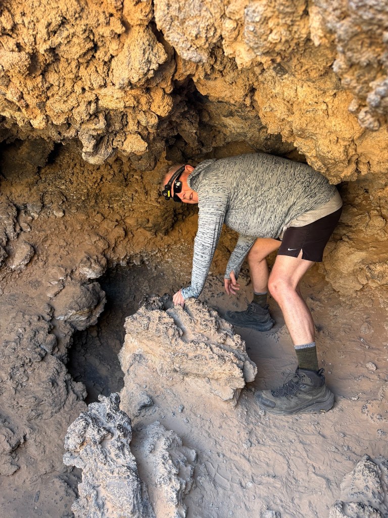 The ones in Volcanoes National Park in Hawaii were much easier to access instead of ducking through and climbing down the ah-ah. We learned there is another lava byproduct in the area – they are Moki Marbles which are a high iron oxide content sandstoned cement that erodes into round balls.