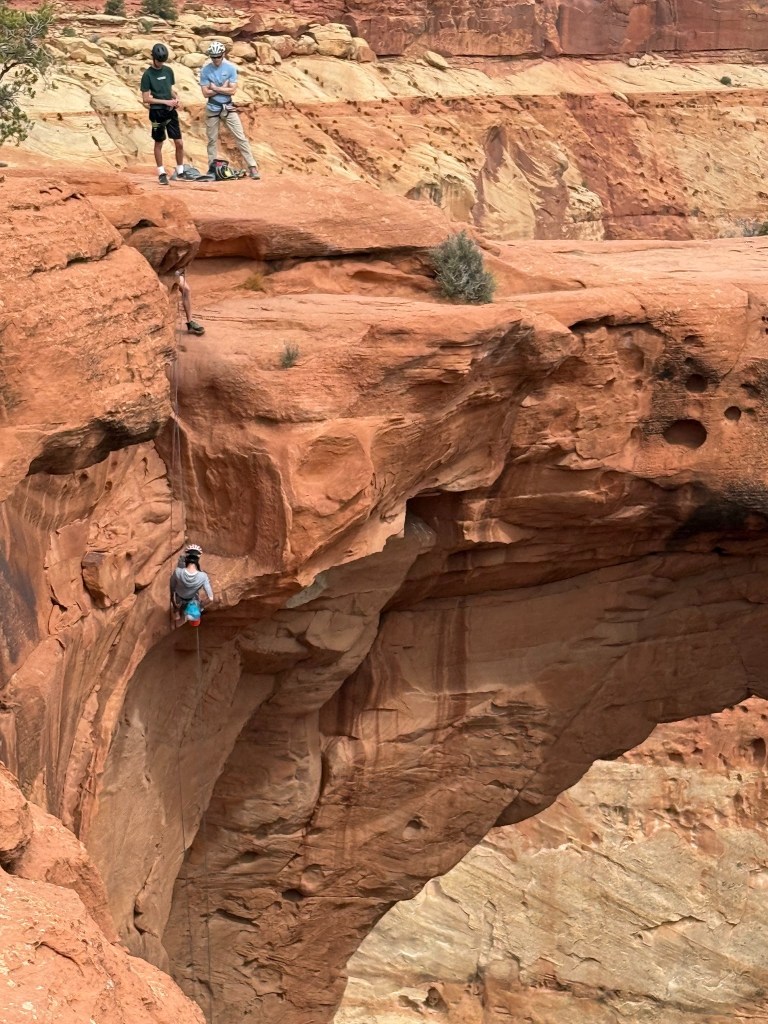 One side of the Arch was visible after hiking a short time as you looked up the canyon wall, but the angle looked like a large divit as you couldn’t see through it from below. I was wondering if the hike would end just knowing that we were on top of it because we could see people on top.