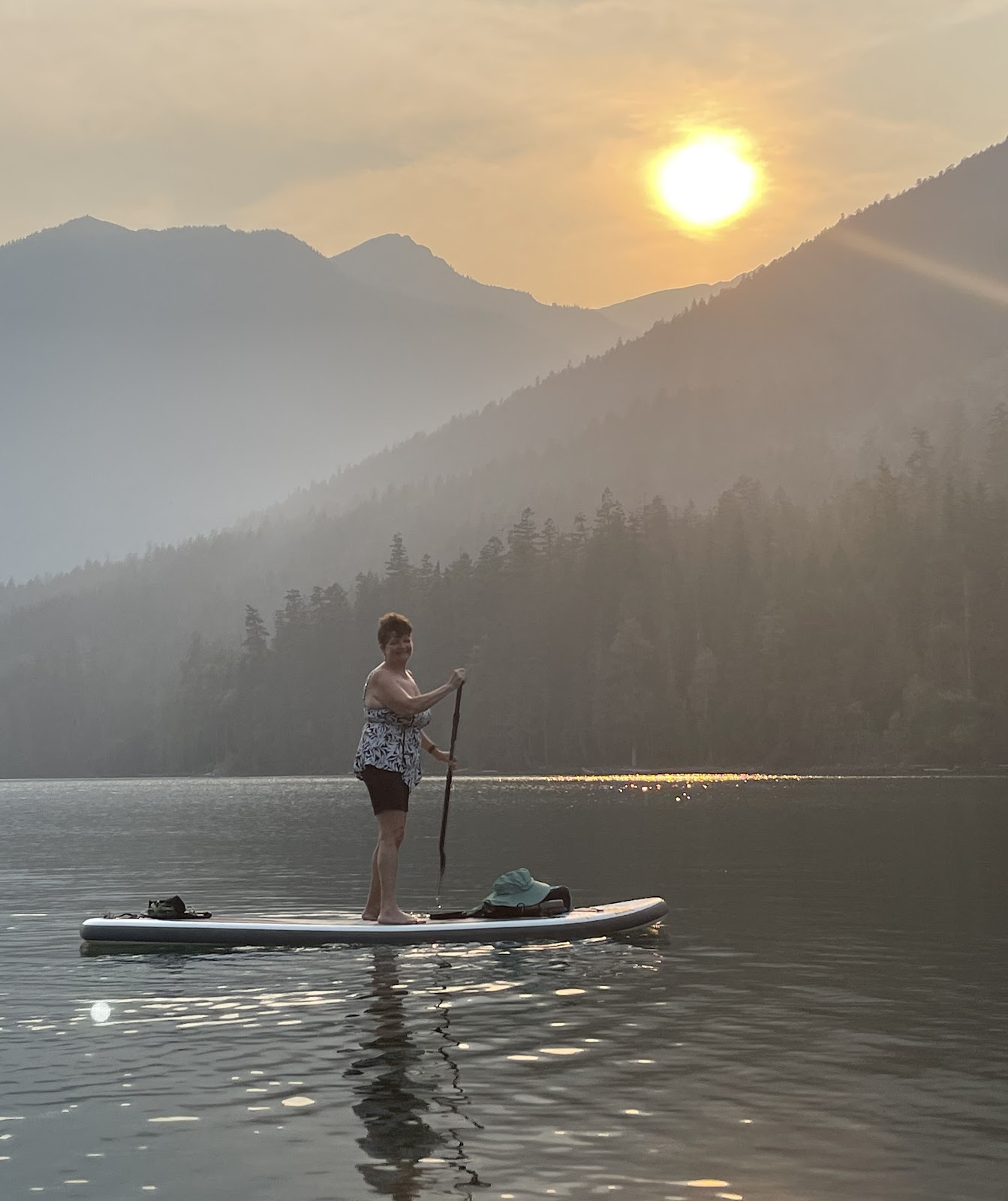 The beaches were very flat and perfect for getting in all those steps that old people like to do each day or even ride a bike. The first campground I booked before the magic Pacific Rim National Park book date was a surfing campground and I wonder if our experience would be different if we had arrived here. Our Greenpoint Campground had beach access and we even watched the bioluminescent waves crash on the shore in the dark after we were clued in my Jimmy Sims the auto racer who we had met the night before at the Tofino brewery and then again when we wandered into them on the “Pacific Wild Trail.” No photos of this phenomenon but a really beautiful sunset instead.